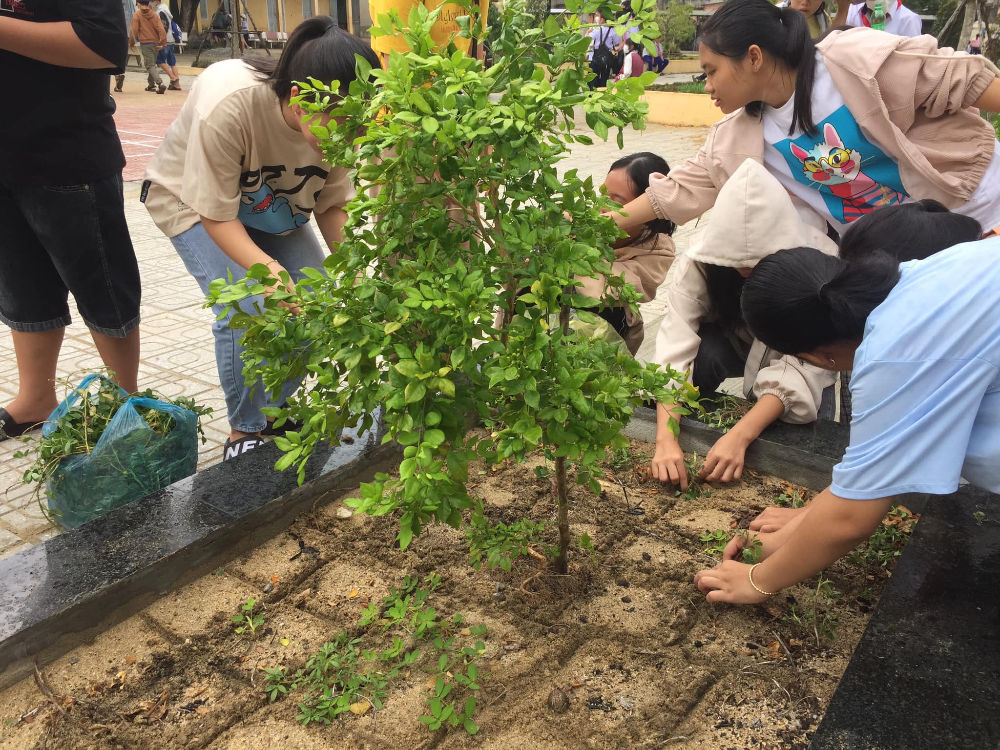 Học sinh các lớp chuẩn bị cho năm học mới, các em đã vệ sinh sạch sẽ sân trường và chăm sóc, trồng thêm hoa.