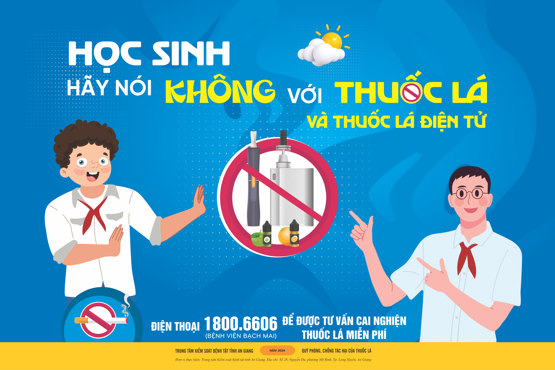 Cuối cùng lời khuyên cho các bạn học sinh là nên nhận biết sớm những tác hại của thuốc lá điện tử với sức khỏe để tránh xa khói thuốc có thể gây chết người này. Hãy nói không với thuốc lá điện tử.