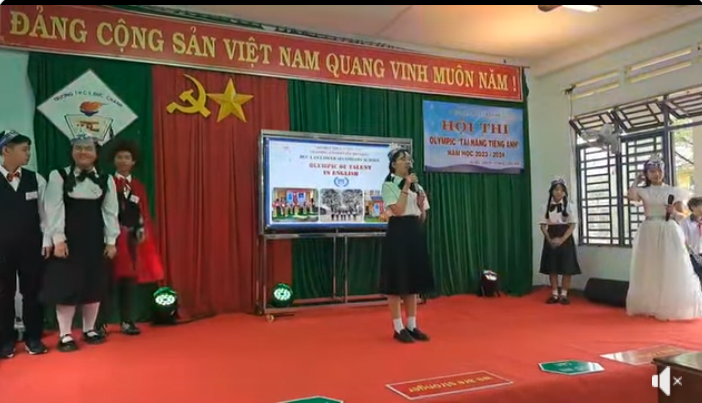 Phần thi tự giới thiệu Olympic "Tài Năng Tiếng Anh" cấp huyện năm học 2023- 2024 của Liên đội Trường THCS Đức Lân thành công tốt đẹp, chúc mừng các em.