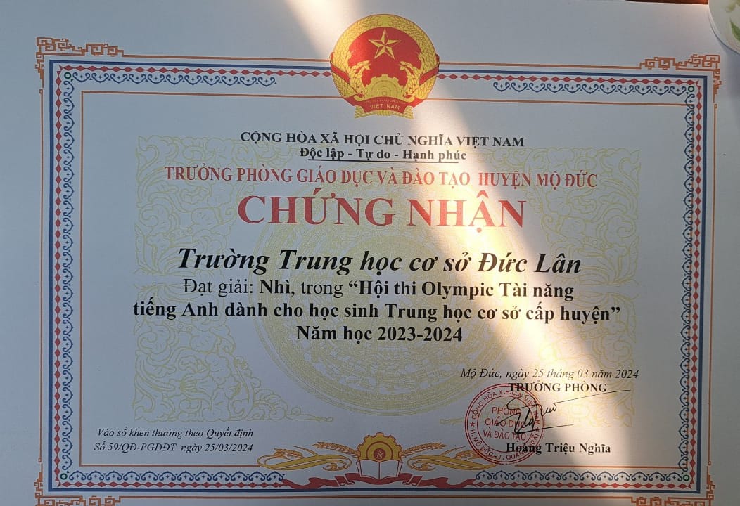 Giúp cho học sinh có cơ hội giao lưu, học hỏi với các bạn bè đồng trang lứa; nâng cao nhu cầu học và sử dụng tiếng Anh. Qua cuộc thi các em trường Đức Lân đã thể hiện phần thi của mình xuất sắc: 02 GIẢI NHẤT, 03 GIẢI NHÌ, 01 GIẢI BA và đứng vị thứ NHÌ TOÀN ĐOÀN. Một lần nữa T/M cho liên đội xin chúc mừng quí thầy cô giáo dạy bộ môn Tiếng Anh và các em Minh Khuê, Hồng Như, Lan Anh, Mai, Khang, Thuận.